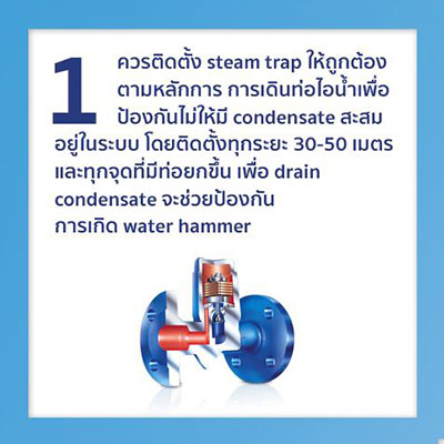 ● ไอน้ำที่มีการสูญเสียพลังงานความร้อนจะควบแน่นกลายเป็นหยดน้ำ หยดน้ำจะก่อตัวรวมกันไหลเข้าไปใน valve พร้อมกับ ไอน้ำที่มีความเร็วสูง ทำให้เข้าไปกระแทก bellow ก่อให้เกิดความเสียหายได้ นอกจากนี้การก่อตัวรวมกันของหยดน้ำเรียกได้ว่าเป็นการสะสมของcondensate ในระบบ เป็นสาเหตุของการเกิด water hammer ซึ่งส่งผลให้ bellow