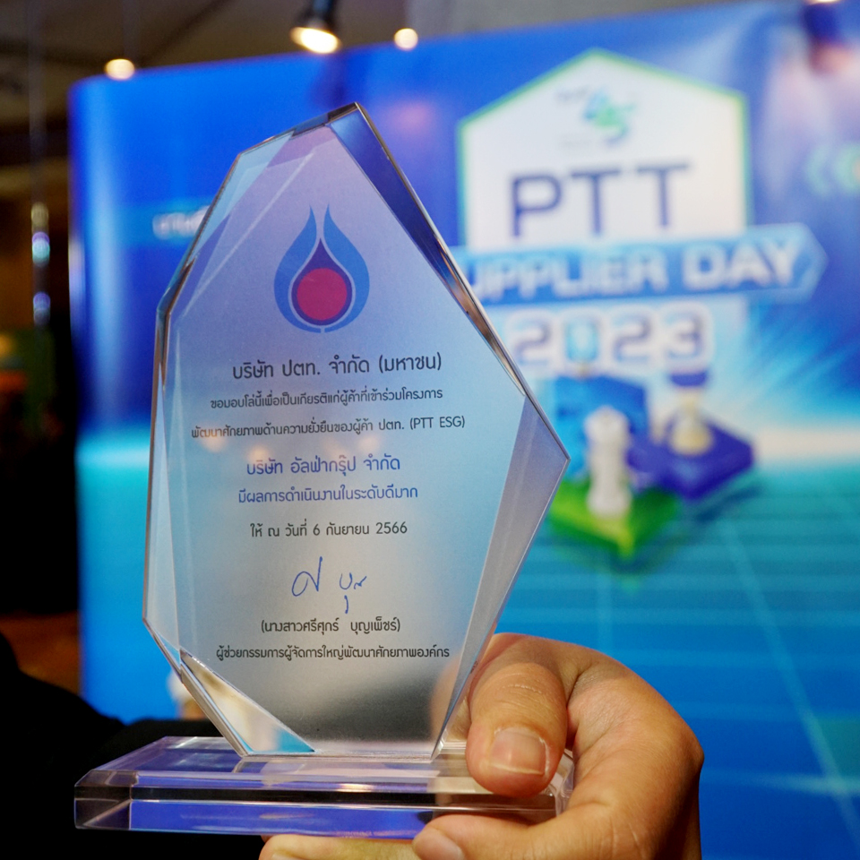 ทั้งนี้ บริษัท อัลฟ่ากรุ๊ป จำกัด ได้ขึ้นรับรางวัลโล่และประกาศนียบัตรเพื่อเป็นเกียรติแก่ผู้ค้าที่เข้าร่วมโครงการพัฒนาศักยภาพด้านความยั่งยืนของผู้ค้า ซึ่งมีผลการประเมินด้าน ESG อยู่ในระดับ “ดีมาก”