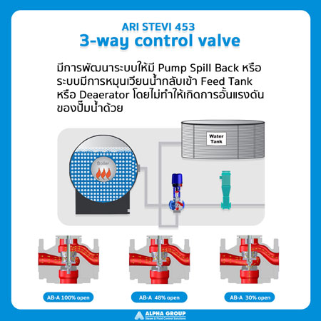 ช่วยควบคุมระดับน้ำป้อนเข้า เพื่อให้ตรงกับความต้องการไอน้ำ ช่วยให้ระดับน้ำในหม้อไอน้ำมีความเสถียรภาพมากขึ้น