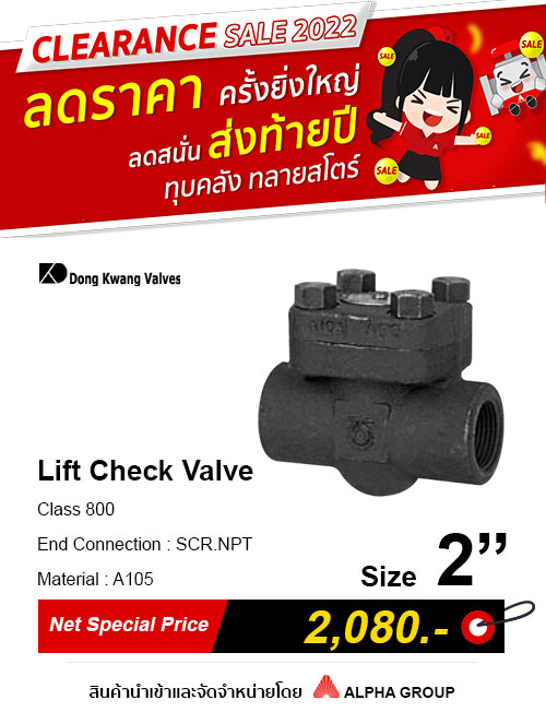 Check Valve วาล์วกันกลับหรือเช็ควาล์ว ป้องกันการไหลย้อนกลับและรักษาความดัน ขอแนะนำให้ติดตั้งเช็ควาล์วลิฟต์ในท่อแนวนอนเนื่องจากดิสก์ถูกดันขึ้นเมื่อมีของไหลผ่าน และเมื่อมีแรงดันดันของไหลให้ย้อนกลับจะปิดลง