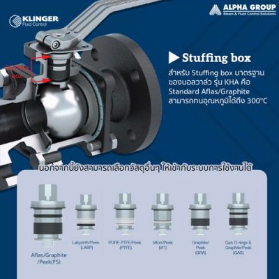 Stuffing box มาตรฐานของบอลวาล์ว รุ่น KHA คือ Standard Aflas/Graphite