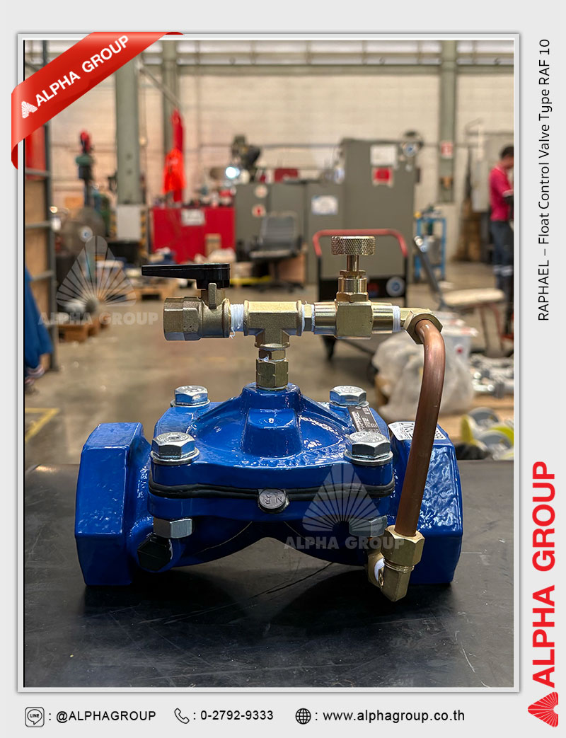RAF 10 ใช้สำหรับควบคุมและรักษาระดับน้ำให้คงที่ตามค่าที่ตั้งไว้ในอ่างเก็บน้ำหรือถังเก็บน้ำ โดยทำงานด้วยหลักการที่เรียบง่ายและคุ้มค่า วาล์ว RAF 10 ใช้แรงดันในระบบเป็นตัวขับเคลื่อนโดยไม่ต้องใช้พลังงานภายนอก วาล์วจะเปิดค้างไว้เมื่อระดับน้ำต่ำกว่าค่าที่ตั้งไว้ และเมื่อระดับน้ำเพิ่มสูงขึ้นจนลูกลอยถูกยกขึ้น วาล์วจะค่อย ๆ ปิดลงอย่างต่อเนื่องจนถึงระดับน้ำที่กำหนด