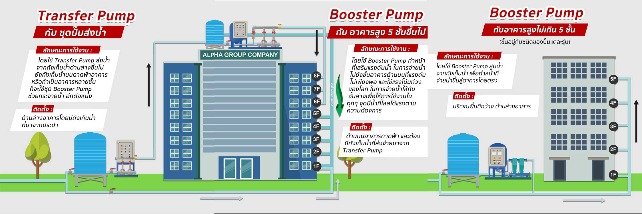 ชุดบูสเตอร์ปั๊ม (Booster Pump Set) ถือว่าเป็นอีกหนึ่งรูปแบบของการประยุกต์การใช้งานระหว่างปั๊มกับระบบ เพื่อให้มีความสามารถในการเพิ่มอัตราการไหล และรักษาแรงดันน้ำในระบบให้มีแรงดันที่คงที่และสม่ำเสมอมากขึ้น ซึ่งโดยส่วนใหญ่แล้วชุดปั๊มประเภทนี้สามารถพบเห็นได้ตามอาคารสูงนั่นเองครับ